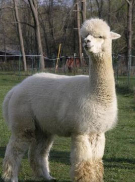 We are proud to offer this wonderful Herdsire Sir Miguel. He is a beautiful light fawn Accoyo male who is destined to do great things. He has sired two beautiful fawn female crias in 2005 and a white female cria in 2004. He has large, strong bone structure with full dense fleece coverage from his huge top knot to his toes.